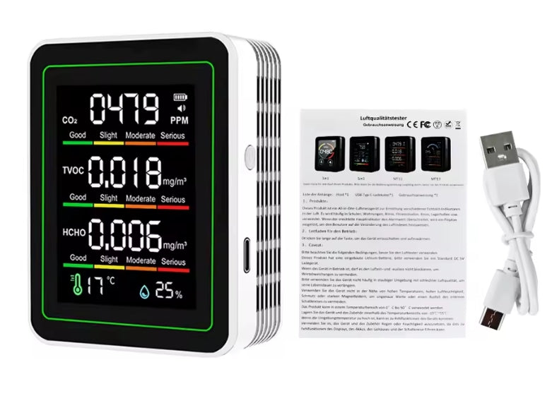 → De PureAir Monitor detecteert verhoogde CO₂-, TVOC- en HCHO-waarden in real-time.